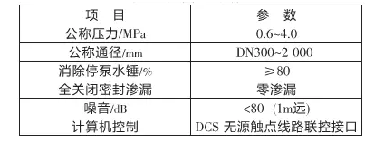 大口徑液控緩閉蝶閥設(shè)計(jì)要求 引言 大口徑液控緩閉蝶閥采用機(jī)械、液壓、電控、計(jì)算機(jī)一體化形式,可替代閘閥、止回閥、調(diào)節(jié)閥,節(jié)材、節(jié)能、節(jié)耗、節(jié)省占地空間;該閥門具有分階段開閥與關(guān)閥功能,因此,在開閥過(guò)程中能有效控制水擊,在關(guān)閉過(guò)程中能有效地消除停泵關(guān)閉水錘,保護(hù)管路與設(shè)備安全,同時(shí)在管路上安裝時(shí)因其具有伸縮功能安裝時(shí)非常便利。但傳統(tǒng)的閥門只具有單一的功能,閘閥只起閘閥的作用,止回閥只起止回閥的作用,在管路上開啟與關(guān)閉時(shí)不能夠有效控制水擊,因此液控緩閉蝶閥被電廠、水廠廣泛采用。 1 設(shè)計(jì)原理 1.1 閥門工況分析 液控緩閉蝶閥分重錘式和蓄能式兩種,使用工況主要有離心泵工況和水輪機(jī)工況等。 開閥離心泵工況(包括離心式混流泵):先啟動(dòng)泵,延遲預(yù)定時(shí)間后開閥。開閥水輪機(jī)工況:先開啟旁通閥平衡壓力,再開閥,后開啟水輪機(jī)。各種工況均要求在停機(jī)或停電的同時(shí)關(guān)閉閥門。 1.2 閥門類型 (1)重錘式。開閥時(shí),電磁閥換向,油泵啟動(dòng),液壓油經(jīng)流量控制閥、高壓膠管進(jìn)入油缸,推動(dòng)活塞將閥門開啟。開閥到位后自動(dòng)保壓系統(tǒng)啟動(dòng),電機(jī)繼續(xù)給保壓蓄能充壓,壓力達(dá)高壓力設(shè)定點(diǎn)后停機(jī)。旋轉(zhuǎn)流量控制閥手輪可以調(diào)整開閥時(shí)間。 關(guān)閥時(shí),電磁閥換向,油缸內(nèi)的壓力油經(jīng)快、慢關(guān)節(jié)流閥、高壓膠管、電磁閥回到油箱,重錘落下,蝶板旋轉(zhuǎn)關(guān)閥,迅速切斷前約70%行程的大部分水流,后30%行程則緩慢關(guān)閉。快慢關(guān)角度及各階段時(shí)間可以根據(jù)管道實(shí)際工況進(jìn)行調(diào)節(jié),有效消除管道水錘。 (2)蓄能式。開閥時(shí),電磁閥換向,蓄能器釋放能量,液壓油經(jīng)調(diào)速閥,單向閥及高壓膠管進(jìn)入油缸,推動(dòng)活塞運(yùn)動(dòng),閥門按調(diào)定的程序開啟,蝶板開至機(jī)械限位調(diào)定全開位置。 關(guān)閥時(shí),電磁閥換向,蓄能器釋放能量,推動(dòng)油缸反向動(dòng)作帶動(dòng)蝶板按調(diào)定程序關(guān)閉閥門至全關(guān)位置。 啟閉過(guò)程中,當(dāng)系統(tǒng)油壓低于壓力控制器調(diào)定下限值時(shí),油泵自動(dòng)開啟,給蓄能器蓄能,當(dāng)蓄能器能量貯存至壓力控制器調(diào)定上限值時(shí),油泵停止運(yùn)轉(zhuǎn)。 電器與液壓部分組成控制系統(tǒng),可實(shí)現(xiàn)泵閥聯(lián)動(dòng)、遠(yuǎn)距離控制、PLC編程控制操作,提供DCS觸點(diǎn)接口,供計(jì)算機(jī)管理。 2 設(shè)計(jì)主要技術(shù)性能參數(shù)(見表1) 表1 技術(shù)性能參數(shù)
