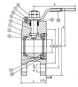 Q71F對(duì)夾式球閥--連接尺寸: | SIZE | 1/2 | 3/4 | 1 | 1 1 / 4 | 1 1 / 2 | 2 | 2 1 / 2 | 3 | 4 | 5 | 6 | 8 | | d | 15 | 19 | 23.5 | 30 | 36 | 45 | 58 | 67 | 76 | 100 | 125 | 195 | | L | 32 | 38.5 | 45 | 55 | 62 | 72 | 95 | 120 | 145 | 200 | 225 | 275 | | D | 95 | 105 | 115 | 135 | 145 | 160 | 180 | 195 | 215 | 245 | 280 | 335 | | D1 | 65 | 75 | 85 | 100 | 110 | 125 | 145 | 160 | 180 | 210 | 240 | 295 | | D2 | 45 | 55 | 65 | 78 | 85 | 100 | 120 | 135 | 155 | 185 | 210 | 265 | | H | 62 | 70 | 79 | 86 | 92 | 102 | 158 | 172 | 187 | 200 | 240 | 278 | | E | 110 | 125 | 135 | 150 | 150 | 180 | 250 | 300 | 350 | 650 | 840 | 1000 | | b | 14 | 14 | 16 | 16 | 18 | 20 | 22 | 24 | 24 | 26 | 26 | 28 | | z-d1 | 4-14 | 4-14 | 4-14 | 4-18 | 4-18 | 4-18 | 4-18 | 8-18 | 8-18 | 8-18 | 8-23 | 12-20 | | f | 2 | 2 | 2 | 3 | 3 | 3 | 3 | 3 | 3 | 3 | 3 | 3 |