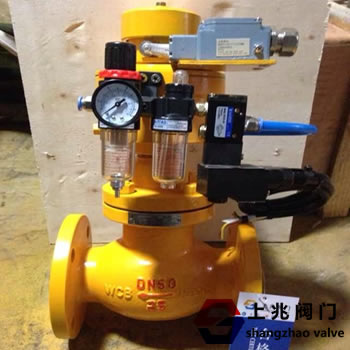 四、0QDQ421F氣動(dòng)電磁切斷閥作用原理及結(jié)構(gòu)說(shuō)明: 1、單作用式工作原理:閥門在無(wú)外壓力操作情況下,閥瓣處于常閉狀態(tài),在管道或貯罐系統(tǒng)上使用時(shí),靠電源和氣源的壓力將閥門打開(kāi),在氣路的壓力使用下閥門處于開(kāi)啟狀態(tài),當(dāng)需要關(guān)閉閥門時(shí),可將電源或氣源壓力泄掉,閥門即自動(dòng)關(guān)。