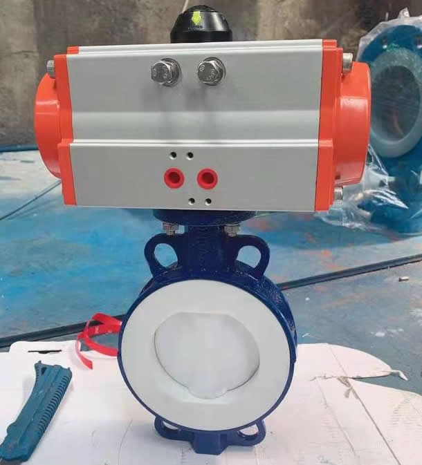 D671F46 氣動襯氟蝶閥屬于對夾式結(jié)構(gòu)廣泛適用于各種不同類型工業(yè)管道中液體和氣體(包括蒸 氣)的輸送,有嚴(yán)重腐蝕性介質(zhì)的使用場合,如:硫酸、氫氟酸、磷酸、氯氣、強堿、王水等具有強腐蝕性的介質(zhì)。