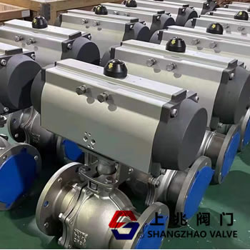 氣動(dòng)球閥主要由閥體、閥球和密封圈三部分組成。對(duì)于超常溫的水,壓力小于10kg,所以閥體用碳鋼,閥球用304不銹鋼,閥座用PTFE。如果是腐蝕性介質(zhì),那么閥體和閥球就要選擇304,如果是含鹽量高的介質(zhì),就要選擇316或316L,如果是用于脫硫脫硫工況,就要選擇雙相不銹鋼。