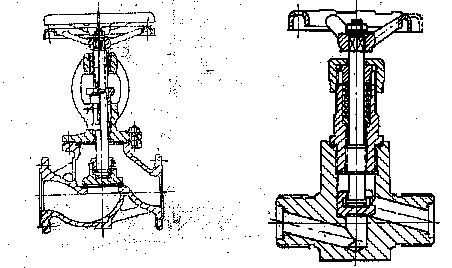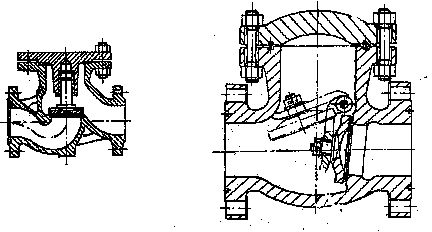 注:PN≤1.0MPa的灰鑄鐵閥體和PN≥2.5MPa的碳素鋼閥體,省略本代號。 第二章 閥門的類型和用途 閥門類型繁多,本文只介紹常用閥門 第一節(jié) 閘 閥 閘閥是指關閉件(閘板)沿通路中心線的垂直方向移動的閥門。 閘閥在管路中主要作切斷用。 閘閥是使用很廣的一種閥門,一般口徑DN≥50mm的切斷裝置都選用它,有時口徑 很小的切斷裝置也選用閘閥,閘閥有以下優(yōu)點: ①流體阻力小。 ②開閉所需外力較小。 ③介質的流向不受限制。 ④全開時,密封面受工作介質的沖蝕比截止閥小。 ⑤體形比較簡單,鑄造工藝性較好。 閘閥也有不足之處: ①外形尺寸和開啟高度都較大。安裝所需空間較大。 ②開閉過程中,密封面間有相對摩擦,容易引起擦傷現(xiàn)象。 ③閘閥一般都有兩個密封面,給加工、研磨和維修增加一些困難。 一、閘閥的種類 1. 按閘板的構造可分 1)平行式閘閥:密封面與垂直中心線平行,即兩個密封面互相平行的閘閥。如圖2—12所示。 ![]() 在平行式閘閥中,以帶推力楔塊的結構最常為常見,既在兩閘板中間有雙面推力楔塊,這種閘閥適用于低壓中小口徑(DN40—300mm)閘閥。也有在兩閘板間帶有彈簧的,彈簧能產生予緊力,有利于閘板的密封。 2)楔式閘閥:密封面與垂直中心線成某種角度,即兩個密封面成楔形的閘閥如圖2—13所示。 密封面的傾斜角度一般有2°52′,3°30′,5°, 8°, 10°等,角度的大小主要取決于介質溫度的高低。一般工作溫度愈高,所取角度應愈大,以減小溫度變化時發(fā)生楔住的可能性。 在楔式閘閥中,又有單閘板,雙閘板和彈性閘板之分。單閘板楔式閘閥,結構簡單,使用可靠,但對密封面角度的精度要求較高,加工和維修較困難,溫度變化時楔住的可能性很大。雙閘板楔式閘閥在水和蒸氣介質管路中使用較多。它的優(yōu)點是:對密封面角度的精度要求較低,溫度變化不易引起楔住的現(xiàn)象,密封面磨損時,可以加墊片補償。但這種結構零件較多,在粘性介質中易粘結,影響密封。更主要是上、下?lián)醢彘L期使用易產生銹蝕,閘板容易脫落。彈性閘板楔式閘閥,它具有單閘板楔式閘閥結構簡單,使用可靠的優(yōu)點,又能產生微量的彈性變形彌補密封面角度加工過程中產生的偏差,改善工藝性,現(xiàn)已被大量采用。 2. 按閥桿的構造閘閥又可分為 1) 明桿閘閥:閥桿螺母在閥蓋或支架上,開閉閘板時,用旋轉閥桿螺母來實現(xiàn)閥桿的升降。如圖2—12所示。這種結構對閥桿的潤滑有利,開閉程度明顯,因此被廣泛采用。 2) 暗桿閘閥:閥桿螺母在閥體內,與介質直接接觸。開閉閘板時,用旋轉閥桿來實現(xiàn)。如圖2—14所示。這種結構的優(yōu)點是:閘閥的高度總保持不變,因此安裝空間小,適用于大口徑或對安裝空間受限制的閘閥。此種結構要裝有開閉指示器,以指示開閉程度。這種結構的缺點是:閥桿螺紋不僅無法潤滑,而且直接接受介質侵蝕,容易損壞。 ![]() 二、閘閥的通徑收縮 如果一個閥體內的通道直徑不一樣(往往都是閥座處的通徑小于法蘭連接處的通徑),稱為通徑收縮。如圖2—15所示。 通徑收縮能使零件尺寸縮小,開、閉所需力相應減小,同時可擴大零部件的應用范圍。但通徑收縮后。流體阻力損失增大。 在某些部門的某些工作條件下(如石油部門的輸油管線),不允許采用通徑收縮的閥門。這一方面是為了減小管線的阻力損失,另一方面是為了避免通徑收縮后給機械清掃管線造成障礙。 第二節(jié) 截止閥 截止閥是關閉件(閥瓣)沿閥座中心線移動的閥門。 截止閥在管路中主要作切斷用。截止閥有以下優(yōu)點: 1. 在開閉過程中密封面的摩擦力比閘閥小,耐磨。 2. 開啟高度小。 3. 通常只有一個密封面,制造工藝好,便于維修。 截止閥使用較為普遍,但由于開閉力矩較大,結構長度較長,一般公稱通徑都限制在DN≤200mm以下。截止閥的流體阻力損失較大。因而限制了截止閥更廣泛的使用。 截止閥的種類很多,根據(jù)閥桿上螺紋的位置可分: 一、上螺紋閥桿截止閥 截止閥閥桿的螺紋在閥體的外面。其優(yōu)點是閥桿不受介質侵蝕,便于潤滑,此種結構采用比較普遍。如圖 2—8所示。 二、下螺紋閥桿截止閥 截止閥閥桿的螺紋在閥體內。這種結構閥桿螺紋與介質直接接觸,易受侵蝕,并無法潤滑。此種結構用于小口徑和溫度不高的地方。如圖 2—9所示。 ![]() 根據(jù)截止閥的通道方向,又可分為;直通式截止閥,角式截止閥和三通式截止閥,后兩種截止閥通常做改變介質流向和分配介質用。 第三節(jié) 節(jié)流閥 節(jié)流閥是指通過改變通道面積達到控制或調節(jié)介質流量與壓力的閥門。 節(jié)流閥在管路中主要作節(jié)流使用。 最常見的節(jié)流閥是采用截止閥改變閥瓣形狀后作節(jié)流用。但用改變截止閥或閘閥開啟高度來作節(jié)流用是極不合適的,因為介質在節(jié)流狀態(tài)下流速很高,必然會使密封面沖蝕磨損,失去切斷密封作用。同樣用節(jié)流閥作切斷裝置也是不合適的。 常見的節(jié)流閥如圖 2 —10所示。 ![]() 節(jié)流閥的閥瓣有多種形狀,常見的有: 1. 鉤形閥瓣,常用于深冷裝置中的膨脹閥。如圖 2—11a所示。 2. 窗形閥瓣,適用于口徑較大的節(jié)流閥如圖2—11b所示。 3. 塞形閥瓣,適用于中小口徑節(jié)流閥,使用較普遍。如圖 2—11C所示。 ![]() 第四節(jié) 止回閥 止回閥是指依靠介質本身流動而自動開、閉