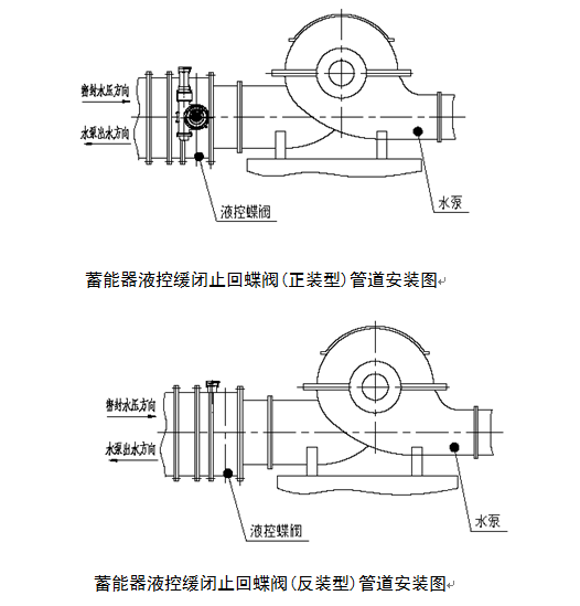 產(chǎn)品介紹 蓄能式液控緩閉止回蝶閥具備水泵出口的閘閥切斷功能和止回閥的止回功能,且集機、電、液系統(tǒng)于一體,占地面積小。蓄能器為閥門啟閉提供主動力源,可現(xiàn)場操作,也可微機集中控制;主要安裝于水電站、水輪機進口,用作水輪機進口閥或安裝于水利、電力、給排水等各類泵站的水泵出口。蓄能器式液控緩閉止回蝶閥由蝶閥、傳動機構(gòu)、液壓站、電控箱等四部分組成。 一、蓄能式液控止回蝶閥--產(chǎn)品簡介 : 蓄能液控緩閉止回蝶閥是目前國內(nèi)外管路控制設(shè)備,主要安裝于水電站水輪機進口,用作水輪機進口閥;或安裝于水利、電力、給排水等各類泵站的水泵出口,替代止回閥和閘閥的功能。工作時,閥門與管道主機配合,按照水力過渡過程原理,通過預(yù)設(shè)的啟閉程序,有效消除管路水錘實現(xiàn)管路的可靠截止,起到保護管路系統(tǒng)安全的作用。 1、可取代水泵出口處原電動閘閥和止回閥的功能,且機、電、液系統(tǒng)集成為一個整體,減少占地面積及基建投資。 2、電液控制功能齊全,無需另外配置即可以作為一個獨立的系統(tǒng)單機就地調(diào)試、控制;也可以作為集散性控制系統(tǒng)(DCS)的一個設(shè)備單元,通過1/0通道由中央計算機進行集中管理,與水泵、水輪機、旁通閥及其他管道設(shè)備實現(xiàn)聯(lián)動操作;并配有手動功能,無動力電源時也可以實現(xiàn)手動開、關(guān)閥,滿足特殊工況下的閥門調(diào)試、控制要求。 3、可控性好,調(diào)節(jié)范圍大、適應(yīng)性強。電液控制系統(tǒng)設(shè)有多處調(diào)節(jié)點,可以按不同的管道控制要求進行啟閉程序設(shè)置保證在滿足開、關(guān)閥條件時,閥門能夠自動按預(yù)先設(shè)定的時間、角度開啟和分快、慢二階段關(guān)閉。并能實現(xiàn)無電關(guān)閥,有效消除破壞性水錘,防止水泵和水輪機組飛逸事故的發(fā)生,降低管網(wǎng)系統(tǒng)的壓力波動,保障設(shè)備的安全可靠運行。 4、主閥密封副為三偏心金屬密封或雙偏心橡膠密封結(jié)構(gòu),啟閉輕松、密封可靠;并有一道額外加大的偏心,使閥門具有良好的自關(guān)閉、自密封性能。中、小口徑蝶板設(shè)計成流線型平板結(jié)構(gòu),大口徑蝶板設(shè)計面雙平板桁架工結(jié)構(gòu),排擠小,水流平順,閥門流阻系數(shù)僅為0.1~0.6,遠小于止回閥的流阻系數(shù)(1.7~2.6),節(jié)能效果明顯。 二、蓄能式液控止回蝶閥--參數(shù)性能: 產(chǎn)品名稱:蓄能式液控緩閉止回蝶閥 所屬系列:蓄能式液控閥門 公稱通徑:DN100~DN4000 公稱壓力:PN2.5~PN64 適用介質(zhì):清水、泥沙水、海水、水庫水、油品、氣體等 介質(zhì)溫度:≤80℃ 開閥時間:3~120秒(可調(diào)) 關(guān)閥時間:3~120秒(可調(diào)) 動力電源:AC380V 控制電源:AC220V、DC220V、DC110V或DC24V 遠程控制:開閥、關(guān)閥、停止 遠程信號:無源的開關(guān)量信號、4~20mA模擬量閥位反饋信號 三、蓄能式液控止回蝶閥--產(chǎn)品結(jié)構(gòu)說明: 1、本產(chǎn)品主要由閥門本體、齒輪齒條傳動箱、液壓裝置、電氣控制箱等部分組成 2、閥門本體由閥體、蝶板、閥桿、滑動軸承、密封件等零件組成。 3、蓄能器式液控緩閉止回蝶閥一般采用臥式布置,也可根據(jù)用戶要求采用立式布置。 4、傳動機構(gòu)主要由齒輪箱、齒輪、齒條等連接、傳動件組成,是液壓動力開關(guān)閥門的主要執(zhí)行機構(gòu)。 5、臥式布置時,傳動機構(gòu)一般采用正向安裝;也可以根據(jù)用戶要求采用反向安裝(即傳動機構(gòu)位于閥門的另一側(cè))。 6、液壓站包括油泵機組、手動泵、蓄能器、電磁閥、溢流閥、流量控制閥、截止閥、液壓集成塊、油箱等部件。 7、蓄能器為閥門啟閉提供主要動力源、流量控制閥調(diào)節(jié)開關(guān)時間、溢流閥作為系統(tǒng)的安全閥、截止閥用作整個系統(tǒng)的卸壓。 8、液壓系統(tǒng)電磁的特征為:電磁閥得電蝶閥工作,失電蝶閥保位鎖定;采用其它作用型式應(yīng)在訂貨時說明。 9、液壓系統(tǒng)與閥門本體可以是整體式安裝,也可以是分體式安裝。用戶未作特殊說明時為分體式安裝。 四、工作原理及操作說明: 本閥電器控制系統(tǒng)主邏輯元件為PLC智能控制型,分以下幾種工況: 開閥離心泵工況(包括離心混流泵):先啟動泵,延長預(yù)定時間后開閥,或泵閥同時開啟。 開閥軸流泵工況(包括軸流混流泵):泵閥同時開啟,或開閥至一定角度,再啟動泵。 4.1自動保壓 合上空氣開關(guān),接通油泵電源AC380V、控制不間斷電源DC24V電源,電源指示燈亮。“轉(zhuǎn)換開關(guān)”旋到控制源右邊位置,控制系統(tǒng)自動保壓單元自動啟動,油泵自動啟動給系統(tǒng)充壓。當(dāng)壓力達到壓力繼電器高壓(15MPa)時,油泵停機。以后閥門操作無論處于什么狀態(tài),自動保壓功能都有效。即當(dāng)系統(tǒng)壓力低于壓力繼電器設(shè)定的低壓12MPa時,油泵自動啟動;當(dāng)系統(tǒng)壓力增至高壓設(shè)定15MPa時,油泵自動停機。 蓄能器存儲的能源足夠動力電源故障,油泵不能啟動時,一次全程開閥或關(guān)閥。將轉(zhuǎn)換開關(guān)旋至左位時,可解除自動保壓功能。 4.2就地控制 將轉(zhuǎn)換開關(guān)旋至“就地”位 4.2.1開閥 按就地控制箱上開閥按鈕,開閥指示燈亮,閥門將按設(shè)定好的速度開