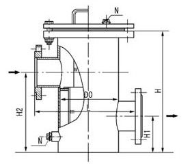 SRBB 高低平底籃式過濾器主要由擋管、筒體、濾籃、法蘭、法蘭蓋及緊固件組成。當流體通過筒體進入濾籃后,固體雜質顆粒被阻擋在濾籃內,而潔凈的流體通過濾籃過濾由過濾器出口排出。當需要清洗時,旋開筒體底部螺塞排除流體,拆卸法蘭蓋,取出濾籃,清洗后重新放入即可。 二、高低平底籃式過濾器--主要尺寸