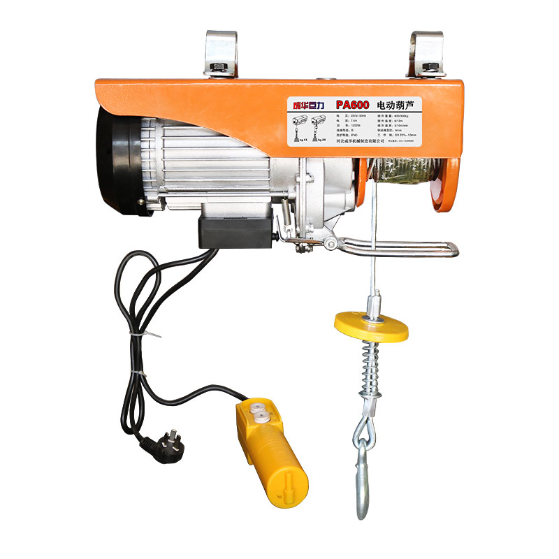 PA600微型電動葫蘆又叫家用微型電動葫蘆、民用電動葫蘆,其外形小巧便攜,安裝簡單方便,噪音小,家用電220V即可操作;搭配電動跑車實現工字鋼上的左右運行;微型電動葫蘆有急停限位安全裝置,使用安全可靠。