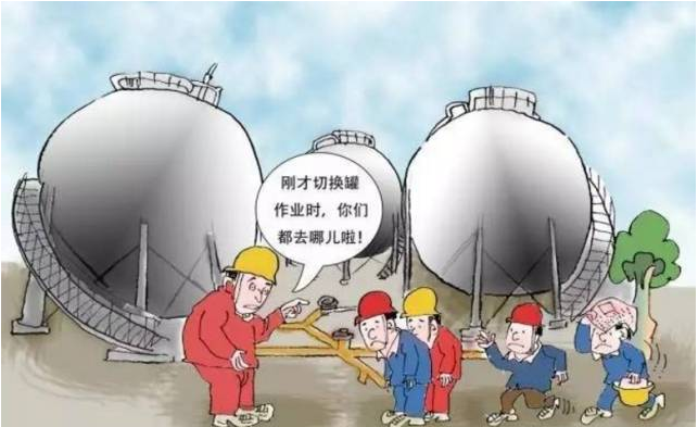本條主要規(guī)定了儲(chǔ)罐區(qū)手動(dòng)切水、切罐、裝卸車作業(yè)管理要求。 手動(dòng)切水是指通過(guò)間斷手動(dòng)打開(kāi)切水閥放出沉積在油氣儲(chǔ)罐底部的水 切罐是指將進(jìn)出物料從一個(gè)儲(chǔ)罐切換到另一個(gè)儲(chǔ)罐 裝卸車是指將儲(chǔ)罐中物料裝車或從運(yùn)輸車輛向儲(chǔ)罐中輸送物料。 切水、切罐、裝卸車等作業(yè)環(huán)節(jié)應(yīng)當(dāng)嚴(yán)格遵守安全作業(yè)標(biāo)準(zhǔn)、規(guī)程和制度,并在監(jiān)護(hù)人員現(xiàn)場(chǎng)指揮和全程監(jiān)護(hù)下進(jìn)行。若監(jiān)護(hù)不到位,極易造成油氣泄漏,引發(fā)事故。 3.嚴(yán)禁關(guān)閉在用油氣儲(chǔ)罐安全閥切斷閥和在泄壓排放系統(tǒng)加盲板