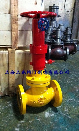 1、閥門在使用時先將手輪逆時針旋轉到底,然后往回倒退一圈再用固定手輪固定螺母,以防手動裝置拉住活塞使密封不到位而形成密封不密閉(本閥出廠前已調好)。閥門在無外壓力操作情況下,閥瓣處于常閉狀態,在系統上使用時,靠手搖油泵的液壓源推動活塞上移使閥門開啟,當需要關閉閥門或遇到有緊急情況時,可將液壓源壓力泄掉,閥門即自動關閉。 2.本閥配備操作手輪當無氣源時可操作手輪使閥門開啟或關閉。 3、閥瓣關閉時,壓力是依靠手搖油泵的液壓源或操作手輪來實現。 4、閥門工作介質的流動方向應是高進低出,與普通截止閥流向正好相反。 5、閥門法蘭的連接尺寸按JB/T79.1-94《凸面整體鑄鋼法蘭》或HG20592-97尺寸標準。 四、主要外形尺寸和連接尺寸