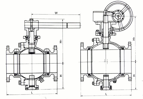 產(chǎn)品介紹 一、Q347F 蝸輪固定式法蘭球閥--概述: Q347蝸輪固定式法蘭球閥,球體帶有固定軸的球閥,稱為固定球閥。固定球閥主要用于高壓大口徑。根據(jù)閥座密封圈的安裝不同,固定球閥可以有兩種結(jié)構(gòu):球體前密封的閥座,球體后密封的閥座Q347H、Q347F硬密封固定球閥廣泛用于石油、天然氣、煤炭和礦石的開采、提煉加工和管道輸送系統(tǒng)中;化工產(chǎn)品、醫(yī)藥和食品生產(chǎn)中;水電、火電和核電的電力生產(chǎn)系統(tǒng)中;城市和工業(yè)企業(yè)的給排水、供熱和供氣系統(tǒng)中。 二、Q347F 蝸輪固定式法蘭球閥--結(jié)構(gòu)簡圖:
