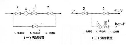 1、安裝時(shí)電磁閥線圈向上,并保持垂直位置,電磁閥上箭頭或標(biāo)記應(yīng)與管道流向一致,不得安裝在有濺水或漏水的地方。 2、電磁閥的工作介質(zhì)應(yīng)清潔無(wú)顆粒雜質(zhì),電磁閥內(nèi)件表面上的污物及過濾器,需定期清潔干凈。 3、在電磁閥發(fā)生故障時(shí),為了及時(shí)隔離電磁閥,并保證系統(tǒng)正常運(yùn)行,最好安裝旁路裝置(如圖一)。 4、在管路系統(tǒng)中,安裝在支路上的電磁閥通徑應(yīng)小于主管道閥門的通徑(如圖二)。 5、安裝電磁閥前,管道必須清洗干凈。建議在電磁閥前安裝過濾器,蒸汽管道安裝疏水閥。 6、不能將電磁閥安裝在管道的低凹處,以免因蒸汽冷凝水、雜質(zhì)等沉淀在閥內(nèi)而防礙動(dòng)作。 7、普通型電磁閥不能在爆炸危險(xiǎn)場(chǎng)合使用。 8、在管路剛性不足情況下,建議把電磁閥前管道用支架固定,以免電磁閥工作時(shí)引起振動(dòng)。 9、在安裝電磁閥前,要注意看清產(chǎn)品電磁閥標(biāo)牌,認(rèn)真閱讀使用說明書電磁閥,判斷電磁閥產(chǎn)品是否符合使用條件。 10、電磁閥前后管道上需安裝壓力表,以便觀察管道壓力。