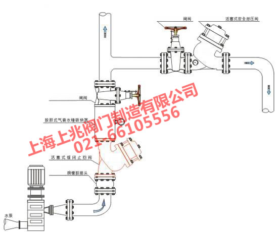 產(chǎn)品介紹 一、YQ98004型過濾活塞式緩閉止回閥--工作原理: YQ98004型過濾活塞式緩閉止回閥安裝在自來水廠及高層建筑給水系統(tǒng),以及其它給水系統(tǒng)的水泵出口管道上,防止介質(zhì)倒流,防止水錘及水擊現(xiàn)象的產(chǎn)生。當水泵開啟時,水通過導管進入中腔,推動活塞上升,主閥開關(guān)。當水泵停止工作時,活塞在回水壓力下降,由于進口處針形閥比出口球閥流量小,因此活塞緩慢下降,主閥也隨之緩慢關(guān)閉。一閥兼具電動閥,逆止閥和水錘消除器,可以有效地提高供水系統(tǒng)的安全可靠性。我公司生產(chǎn)YQ98004型過濾活塞式止回閥平穩(wěn)可靠,消除壓力余波。 二、YQ98004型過濾活塞式緩閉止回閥--特點: 1、消除水錘效果好。將緩開、速閉消除水錘的技術(shù)原理一體化,防止開泵水錘和停泵水錘的產(chǎn)生。 2、操作方便。只需操作水泵電機啟閉按扭,閥門即按照水泵操作規(guī)程實現(xiàn)自動開閉。 3、節(jié)能效果好。閥體采用了全通道流線型直流式設計,壓力損失小、流量大、具體積小、重量輕。 三、YQ98004型過濾活塞式緩閉止回閥--主要技術(shù)參數(shù):