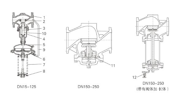 | 壓力平衡 | 不銹鋼波紋管( DN15-125)、平衡膜片( DN150-250) |