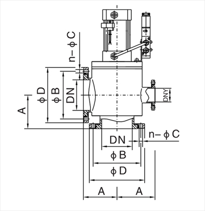 型號(hào) | 通徑(DN) | ΦD | ΦB | A | n-ΦC | DNy(預(yù)抽口) | 法蘭標(biāo)準(zhǔn) |