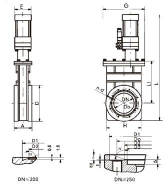 產(chǎn)品介紹 CCQ-A型超高真空插板閥--產(chǎn)品介紹: CCQ-A型超高真空插板閥是通過電磁換向閥改變氣路方向,控制執(zhí)行氣缸驅(qū)動(dòng)閥板作上下運(yùn)動(dòng),達(dá)到閥門的開啟或關(guān)閉。超高真空插板閥門用于接通或切斷真空管路中的氣流。超高真空插板閥適用介質(zhì)為純凈空氣和非腐蝕性氣體。超高真空插板閥帶反饋信號(hào)裝置。 CCQ-Apneumatic ultra-high vacuum gate valve uses solenoid directional valve to change the direction of air passage, and controls the actuating cylinder to drive the valve disc up and down to make the valve opened or closed. It is used to put through or cut off the air passage in vacuum pipeline. Applicable medium can be pure air and noncorrosive gases. With signal feedback device. CCQ-A型超高真空插板閥主要零件材料 閥體、閥板:不銹鋼 密封件:氟橡膠、波紋管(軸封)、丁腈橡膠 超高真空插板閥主要技術(shù)性能 適用范圍:105~1.3×10-7 Pa 閥門漏率:≤1.3×10-7Pa.L/S(DN≤200);≤6.7×10-7Pa.L/S(DN≤250) 適用溫度:30~+150℃ 閥門開啟時(shí)閥板兩側(cè)的壓差:≤2.7×103Pa